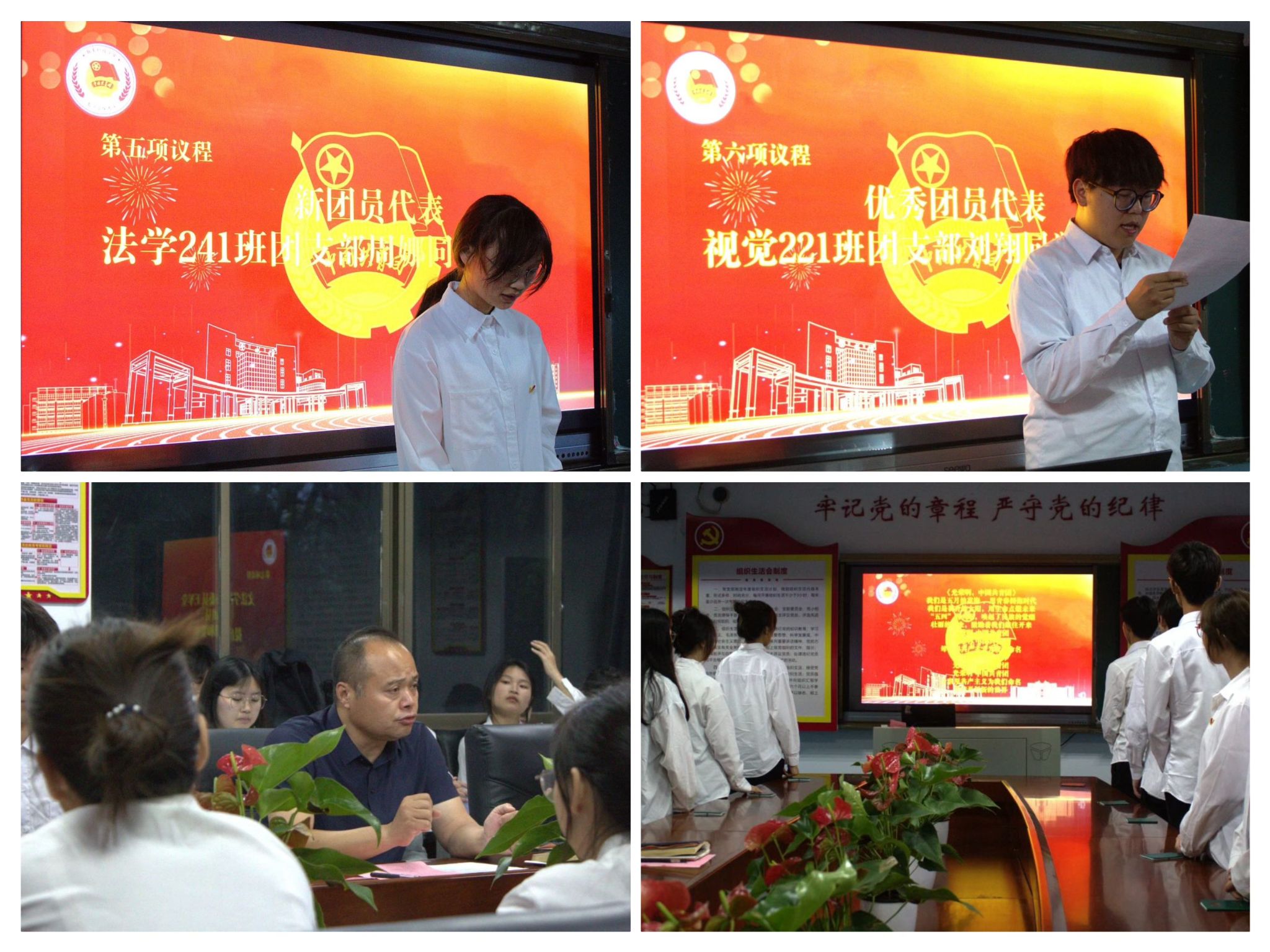 本次入团仪式共设有八项议程:(1)奏唱中华人民共和国国歌;(2)王金鉴宣布新团员名单;(3)向新团员颁发团章、团员证和团徽,佩戴团徽;(4)带领新团员宣誓;(2)法学241班周娜作新团员代表发言;(3)视觉221班刘翔作优秀团员代表发言;(7)九游体育官方网站党委委员王军堂向新团员提出希望和要求;(8)全体成员奏唱团歌。
