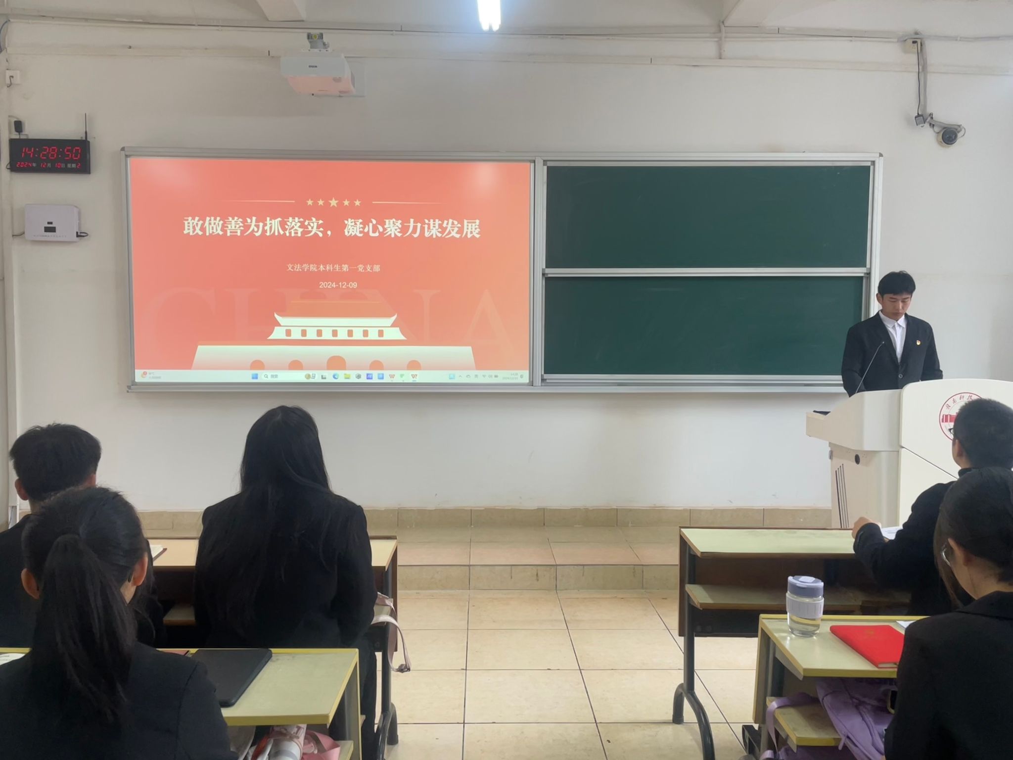 本网讯:12月10日,九游体育官方网站本科生第一党支部在Z129教室举办以“敢做善为抓落实,凝心聚力谋发展”为主题的党日活动。本次活动由罗晨韵同志主持,一支部全体党员参加了此次活动。