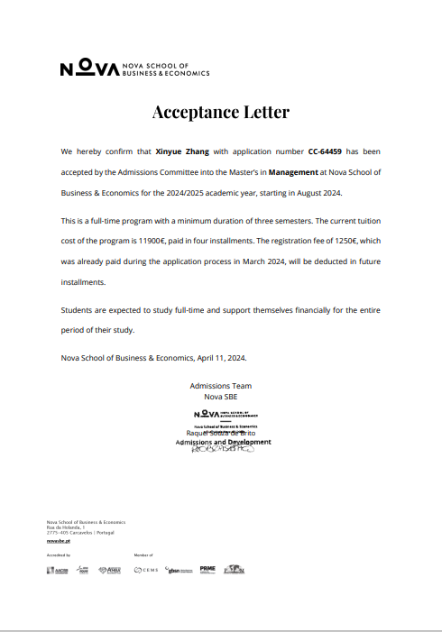 毕业生考取葡萄牙里斯本大学等海外高校研究生