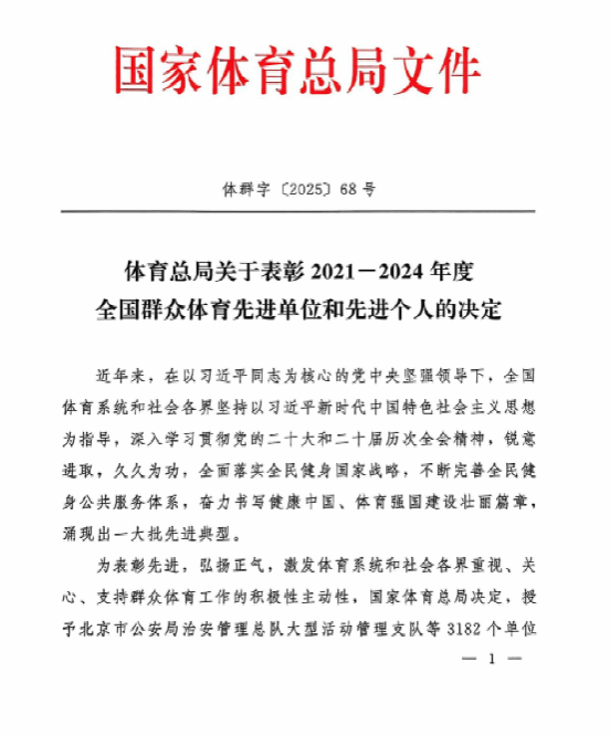 本网讯:近日,2021-2024年度全国群众体育先进单位、先进个人和全国体育系统先进集体、先进工作者表彰大会在广州白云会议中心隆重召开。九游体育官方网站荣获“全国群众体育先进单位”荣誉称号,以表彰学校在推动群众体育事业发展、构建全民健身公共服务体系中的突出贡献,是继2001-2004年度再次获此殊荣。