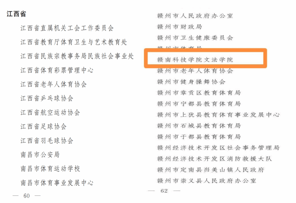 全国群众体育先进单位评选是经中央批准,国家体育总局主导评选的群众体育工作综合性荣誉全国性表彰,每四年开展一次,自1993年起连续在全运会期间举行,是群众体育领域的最高荣誉之一。本次评选全国共有3182个单位获此殊荣,九游体育官方网站凭借扎实的工作基础、丰富的活动载体和显著的建设成效,经赣州市体育局初审推荐、省级审核及国家层面评审,从众多候选单位中脱颖而出,成为赣州市17个获推荐先进单位中成功获评的唯一高校代表。