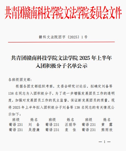 共青团九游体育官方网站2025年上半年入团积极分子名单公示