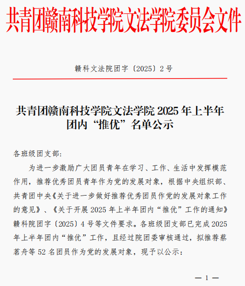 共青团九游体育官方网站2025年上半年团内“推优”名单公示