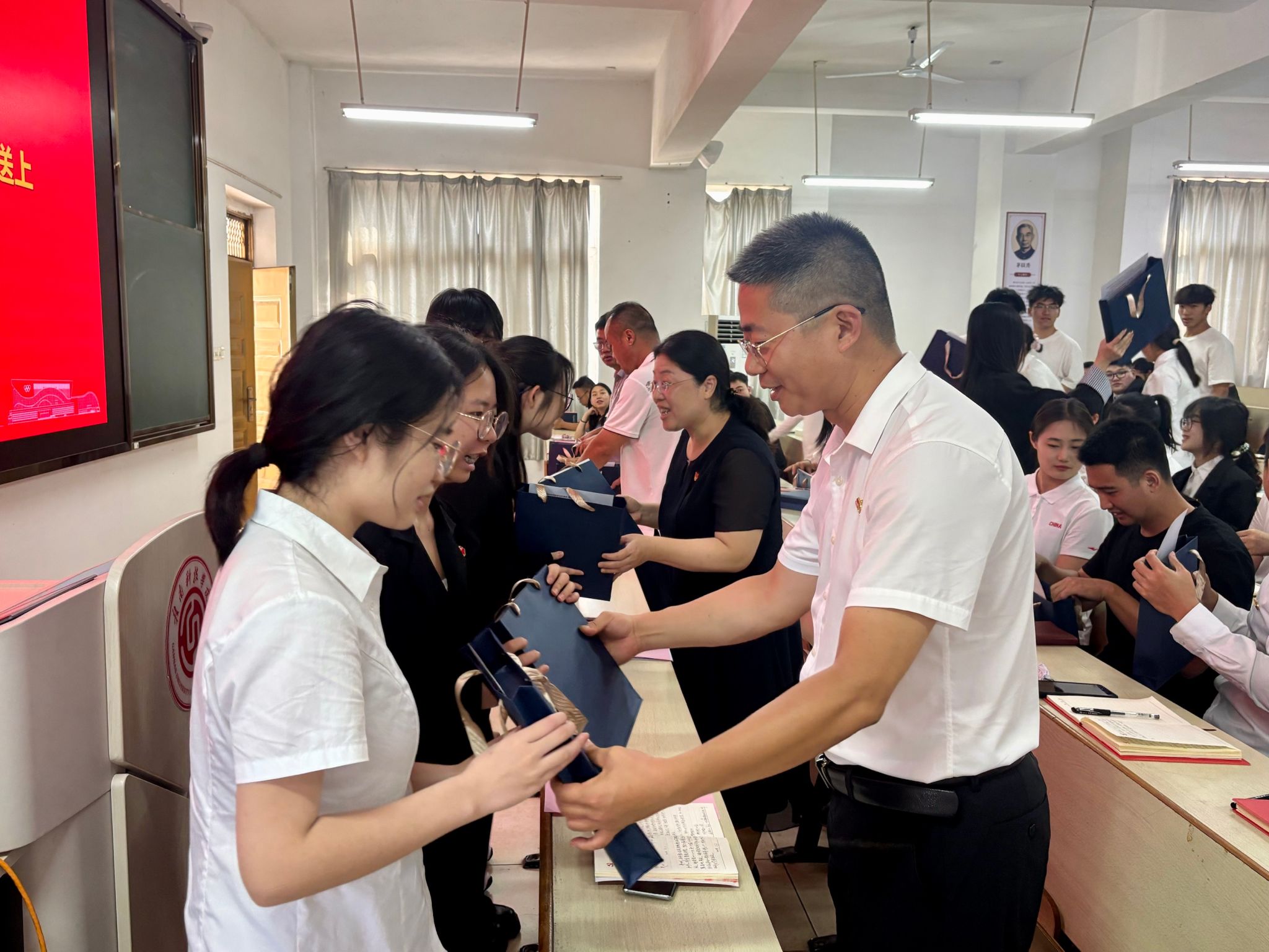 九游体育官方网站党委委员、副院长高健婕向圆满完成学业的毕业生党员表示热烈祝贺。她殷切希望同学们要永远牢记党员身份,坚守入党初心,以党员标准严格要求自己,在工作、生活中勇于担当、积极作为,为党和国家事业奉献力量。随后,九游体育官方网站党委委员为全体毕业生党员送上纪念品和真挚祝福。