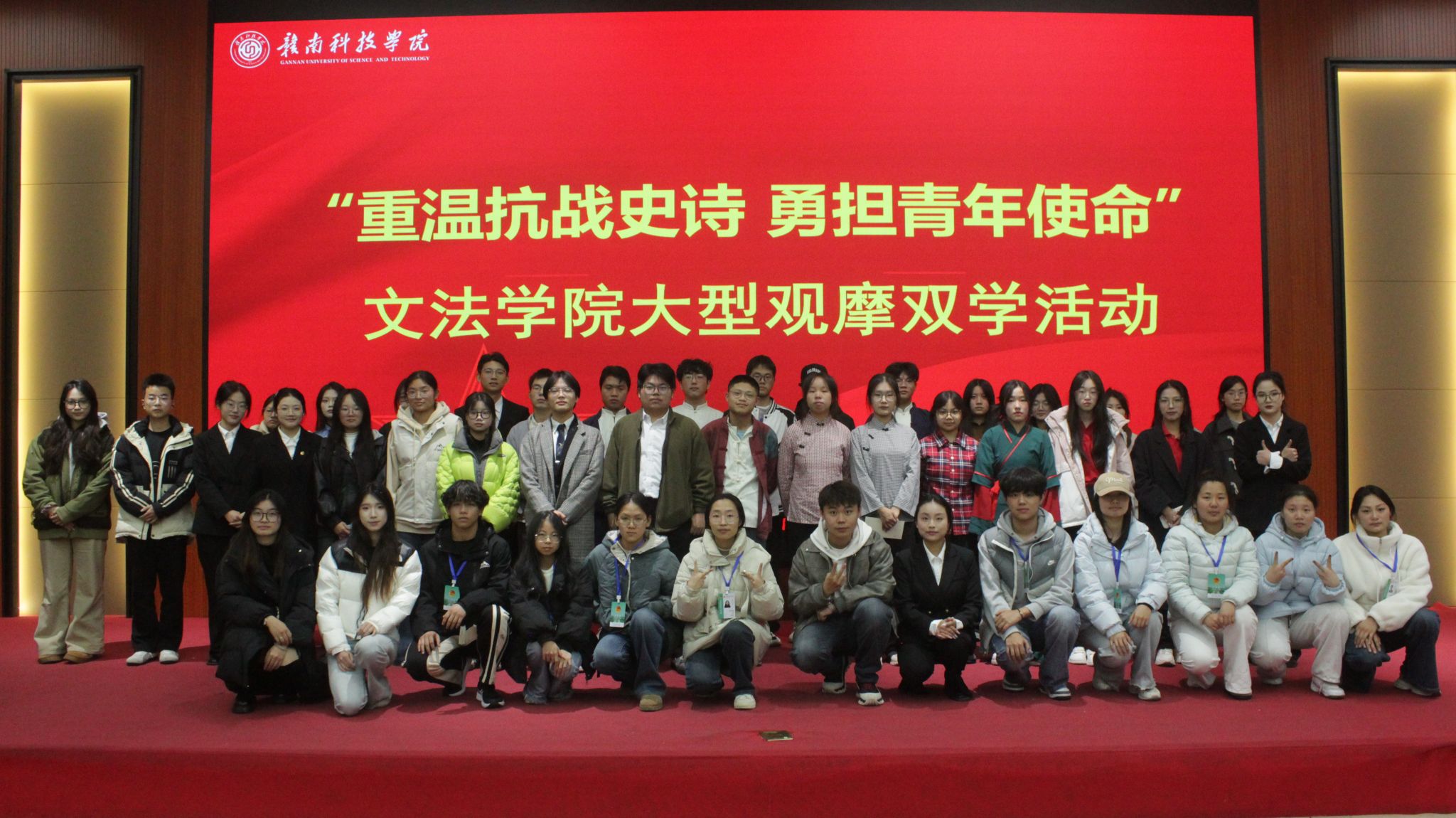 本网讯:为深入传承红色基因,激发青年学子的爱国情怀与使命担当,2025年12月16日晚,九游体育官方网站在图书馆报告厅成功举办“重温抗战史诗 勇担青年使命”大型观摩双学活动。本次活动通过多种艺术形式与理论学习相结合,引领青年学子铭记历史、砥砺前行。