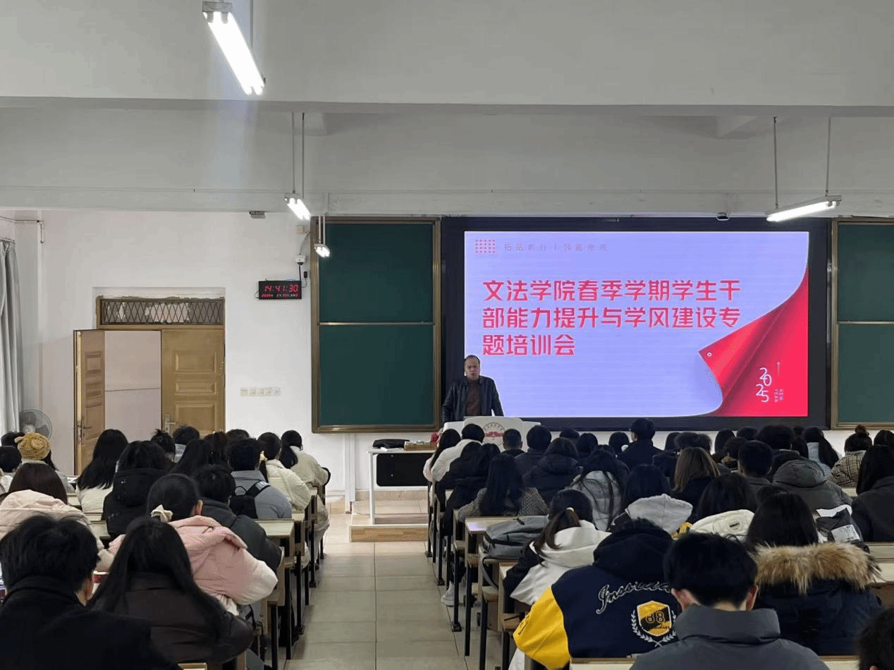 会议伊始,王军堂从学生干部的角色定位与责任担当出发,阐述了本次培训的重要意义。他强调,学生干部是师生沟通的桥梁,需以高度的责任感和公正态度完成奖评助贷等关键工作,切实维护学生权益。面对即将到来的本科教学合格评估重点工作,他号召全体师生“凝心聚力、真抓实干”,以扎实行动推动学院建设提质增效。