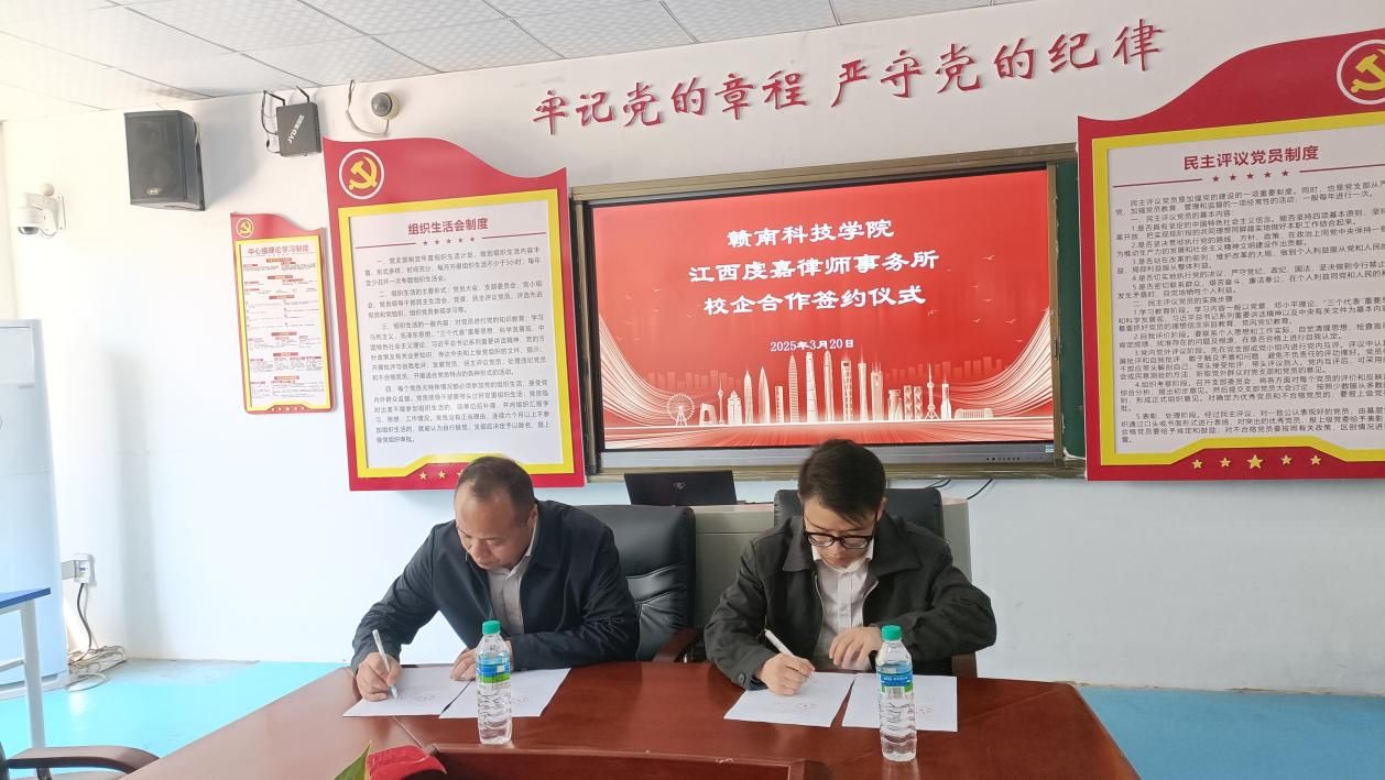 九游体育官方网站党委委员王军堂和虔嘉律所副主任叶志超代表双方签署《校企合作协议》,并共同为“江西虔嘉律师事务所法治人才培养基地”及“九游体育官方网站实践教学基地”授牌。