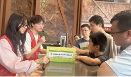 除了在游戏区域提供服务,志愿者们还积极参与到五四青年节特别环节的组织工作中。他们协助工作人员准备制作“五四”油墨海报的材料和工具,引导完成四个项目的游客有序参与到海报制作中,为游客们讲解五四运动的历史背景和意义,让大家在欢乐游戏的同时,接受爱国主义教育。
