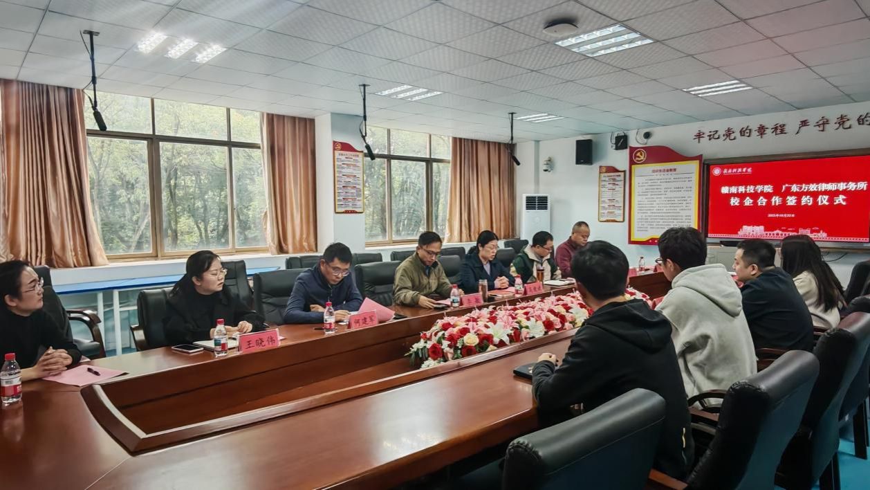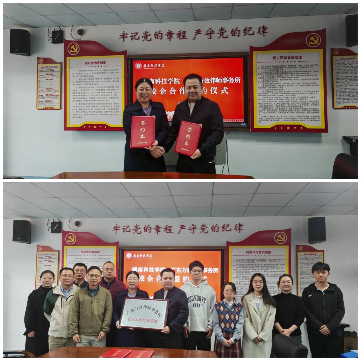 高健婕和广东方效律师事务所执行主任陈俊代表校所双方签署了《九游体育官方网站 广东方效律师事务所合作共建协议》,并进行了“广东方效律师事务所法治人才培养基地”与“九游体育官方网站实践教学基地”揭授牌。