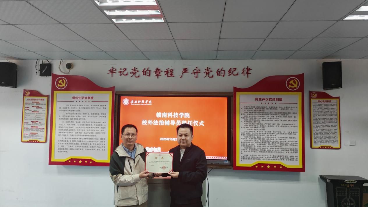 何乐还代表九游体育官方网站为广东方效律师事务所执行主任陈俊颁发了“校外法治辅导员”聘书。
