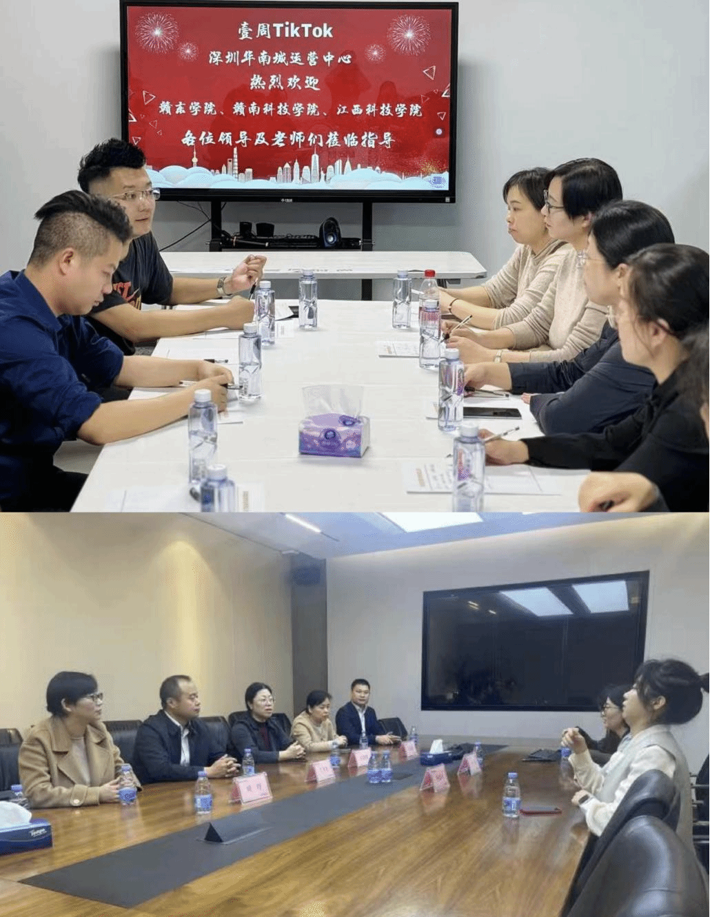12月6日人文科学系高健婕主任、王军堂副主任英语教研室顾玲老师和公共外语教研室范丽萍老师一行四人赴深圳访企拓岗当天下午走访了深圳市万企千校网络科技有限公司2024届英语专业毕业生实习就业进行了深入交流,实地参观了多间Tiktok直播室。