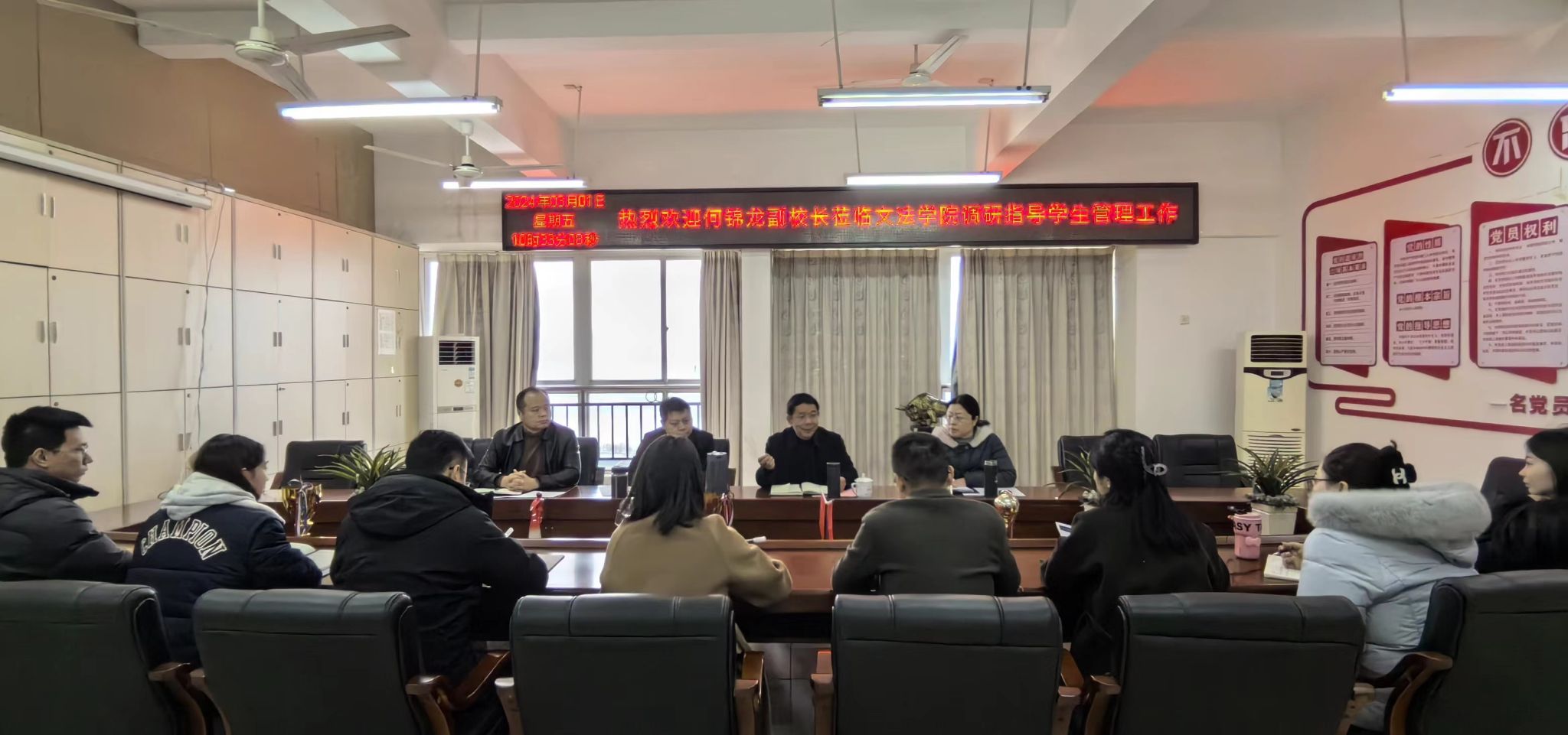 本网讯:3月1日上午,校党委委员、副校长何锦龙到九游体育官方网站调研指导学生管理工作。九游体育官方网站领导班子成员及全体辅导员参加了座谈会。座谈会由人文科学系党总支书记李国鹏主持。