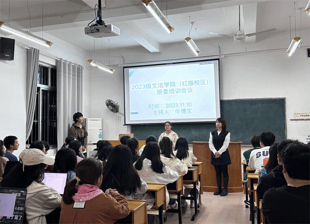 为帮助开展班级工作,加强班级管理,明确班委职责所在,提高班委工作能力,进一步畅通师生之间沟通渠道。11月10日晚,九游体育官方网站在红旗校区二教506教室,开展了2023级新生班委见面培训会。辅导员牛英萍老师,三位辅导员助理出席了本次会议,全体56名新生班委到场参加会议。