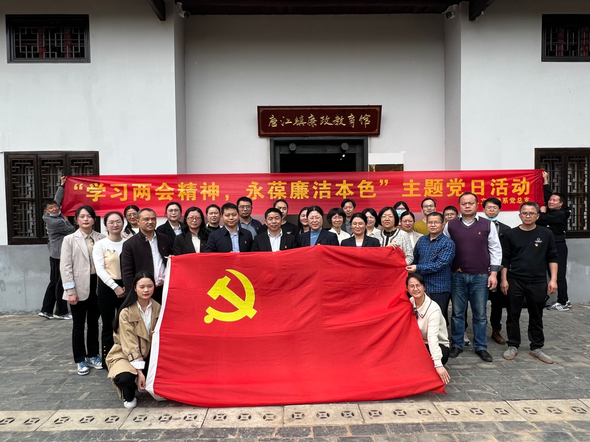 本网讯:为贯彻落实党的二十大精神和全国两会精神,坚定不移推进全面从严治党,进一步提升党员廉洁自律意识,凝聚思想合力、战斗合力,不断优化工作作风,3月21日,人文科学系党总支赴唐江镇廉政教育馆开展了“学习两会精神 永葆廉洁本色”主题党日活动。人文科学系全体教工党员、民主党派和无党派人士代表参加了本次活动。