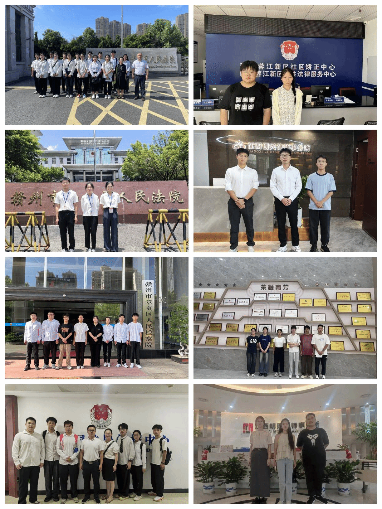 8月1日,九游体育官网2022级法学专业留赣实习学生在法学教研室主任刘翛然和法学骨干教师刘锦龙、龚云辉的带领下分别前往赣州市司法局、赣州市章贡区人民检察院、赣州市经济技术开发区人民法院、赣州市南康区人民法院、赣州市司法局、江西创兴律师事务所、江西南芳律师事务所、江西明理律师事务所进行为期一个月的暑期实习。