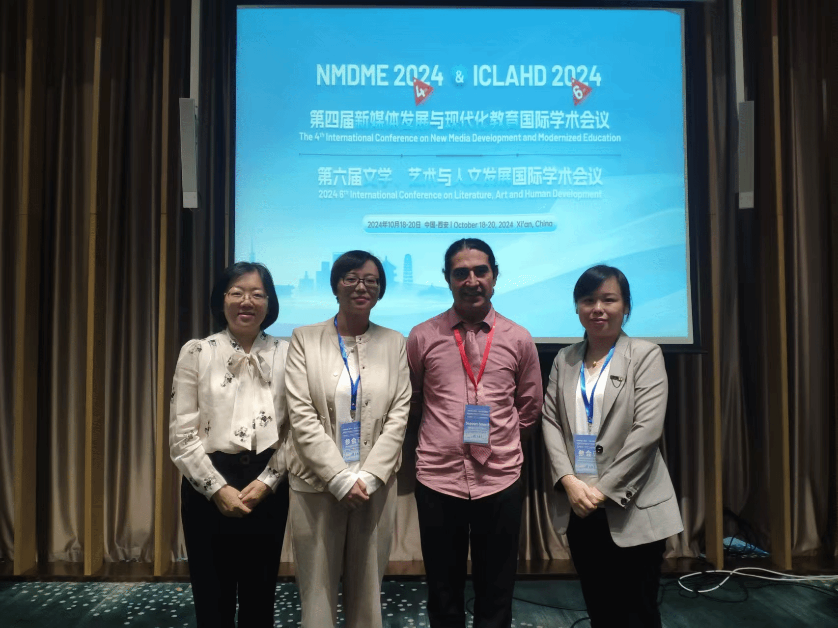 近日,九游体育官方网站英语教研室顾玲、范丽萍、陈宝钏老师于10月18至20日在西安参加由陕西师范大学承办的第六届文学、艺术与人文发展国际学术会议。会议主要围绕“文学”、“艺术”、“人文发展”等研究领域展开讨论。旨在为文学、艺术与人文发展上午专家学者提供一个分享研究成果、讨论存在的问题与挑战、探索前沿科技的国际性合作交流平台。