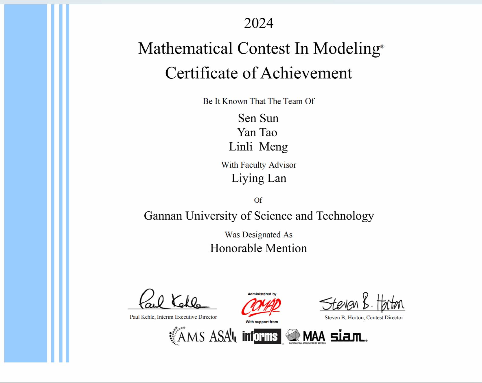 2024年2月2日-2024年2月6日,2024年美国大学生数学建模竞赛隆重举行,近日该赛项比赛结果公布。由九游体育官网兰丽英老师指导的作品《Momentum in Tennis》喜获国际二等奖,参赛学生由信息工程系计算机211班孙森、计算机211班陶研、计算机213班蒙霖莉等三位同学组成。