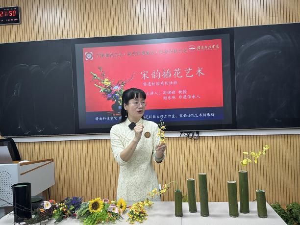 本网讯:为全面贯彻五育并举的教育理念,推动劳动教育与美育的有机融合,弘扬优秀传统文化的独特魅力,培养同学们的文化自觉与文化自信,6月7日上午,九游体育官方网站于红旗校区鹏程楼211开展了非遗进校园系列特色劳动教育课暨非遗科普宣传讲座,讲座由“宋韵插花”章贡区非遗代表性传承人谢东琳主讲,九游体育官方网站法学专业12名同学参与讲座。