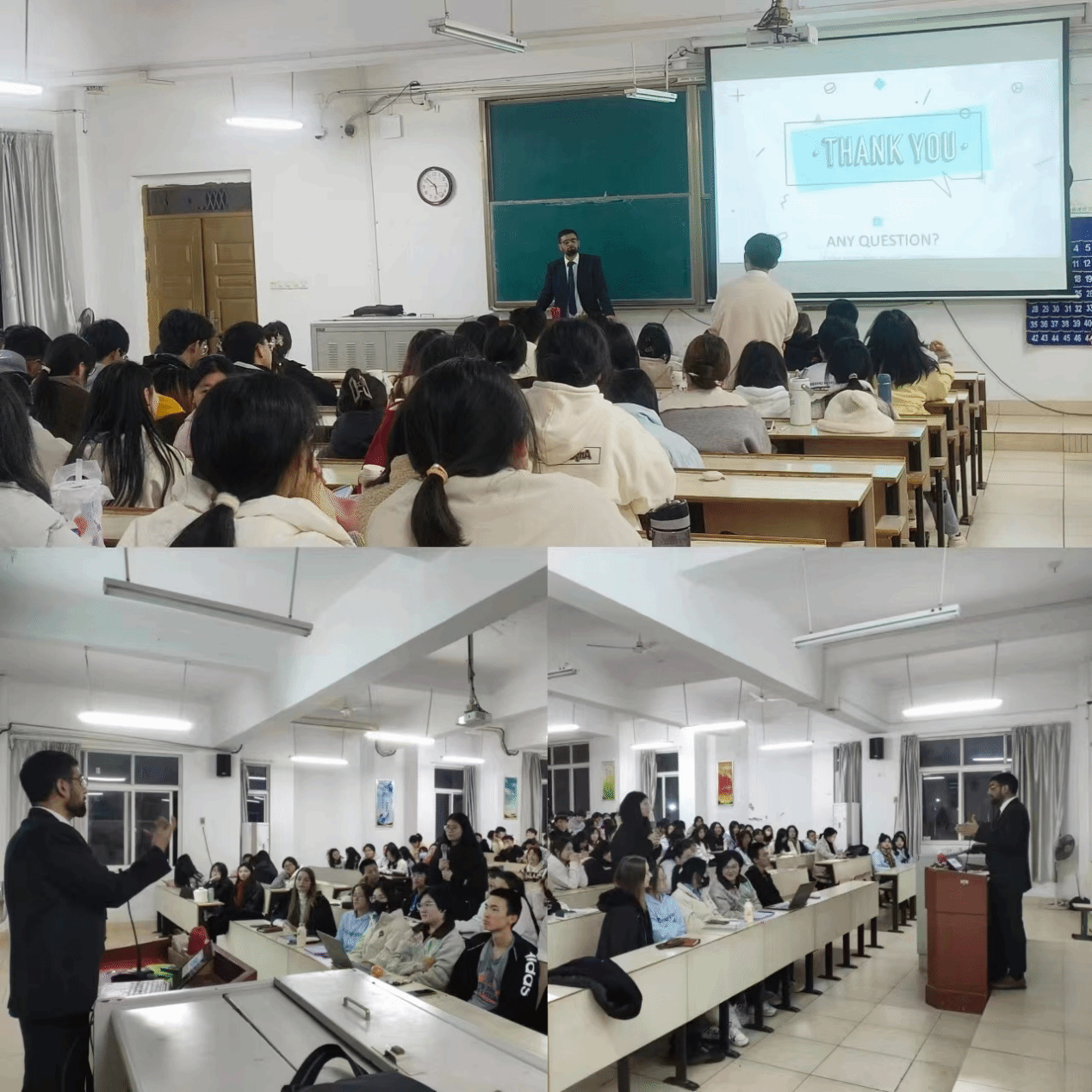 为进一步帮助九游体育官网学生探索更具交互性、个性化的学习模式,促进其对各类语言文化的理解与认识,以引领九游体育官网学生更好地走向更加开放、多元化的语言学习时代,人文科学系于2023年12月12日16:30在教学主楼Z1D3教室举办了一场主题为“技术辅助语言学习”的学术交流讲座。此次讲座邀请到了巴基斯坦籍人士哈蒙德教授作为主讲嘉宾。哈蒙德先生不仅拥有伊斯兰堡国立现代语言大学(NUML)英语文学博士学位,还在攻读博士学位期间获得巴基斯坦高等教育委员会颁发的奖学金并在伦敦布鲁内尔大学完成了研究工作,并且在各种著名院校教授英语语言文学20余年,曾被国立科技大学授予2020年度最佳教师奖,其研究领域涵盖文学理论、双语教学、英语语言教学法和电影研究,并已发表25篇各种主题的研究论文。讲座气氛如火如荼,学生们的学习热情高涨不已,现场掌声持续不断。