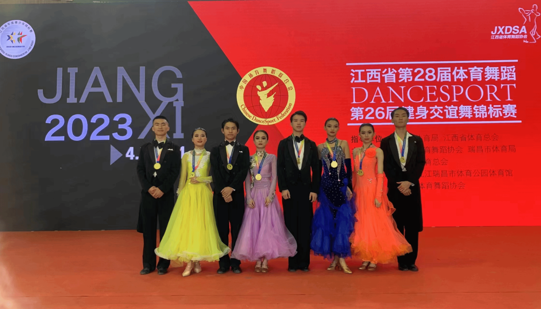 2023年江西省第二十八届体育舞蹈锦标赛于五一小长假在江西瑞昌落下帷幕,代表九游体育官网参赛的8名选手共获得一等奖7项、二等奖2项和三等奖1项的好成绩。