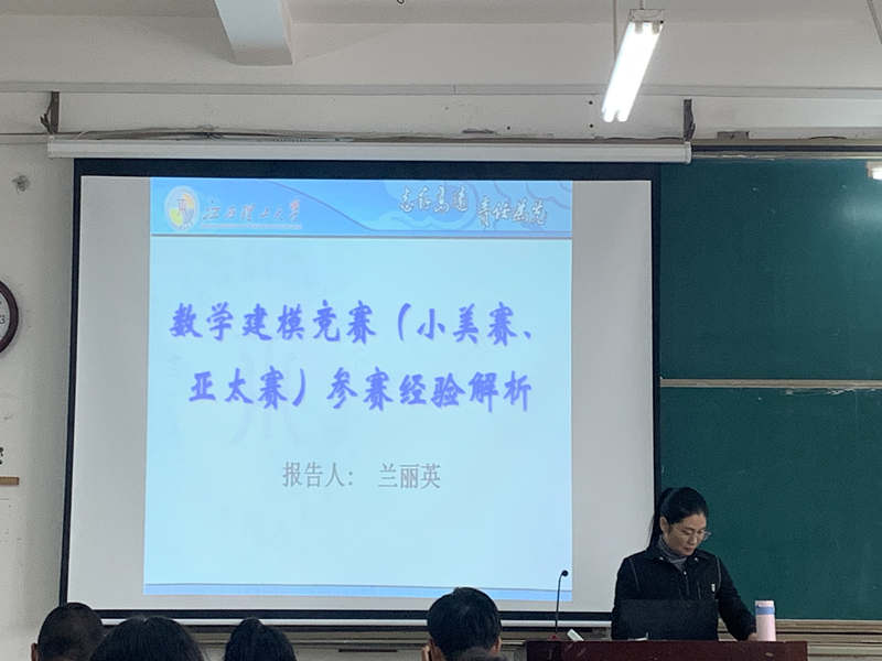 2021年11月20日,为了帮助同学们更加全面地了解亚太地区大学生数学建模竞赛(简称亚太赛)和“认证杯”数学中国数学建模国际赛(简称小美赛),灵活使用数学模型解决实际问题,人文科学系数学教研室副主任兰丽英老师在教学主楼Z102教室为全院70多名同学做了大赛经验分享的讲座。讲座共历时两个小时,讲座内容主要有竞赛参赛方法、竞赛准备过程、英文论文模板、获奖论文范例解读等,重点介绍亚太赛和小美赛中英文论文写作的注意事项,从摘要、图、表、假设、公式、优缺点、总结等方面讲述英文论文写作技巧。