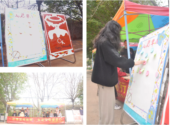 活动期间,女生们用便利贴在心愿单上写下自己的心愿,并在指点位置挂上属于自己的心愿卡片。男生们化身“心愿变现师”,将女生们的愿望一一实现。